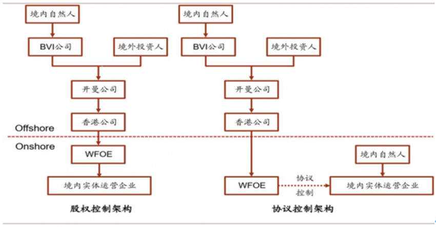 可见,红筹结构最核心的步骤是:①创始团队层层设立BVI公司/开曼公司/WFOE --> ②使用WFOE收购或通过控制性协议合并境内运营主体。