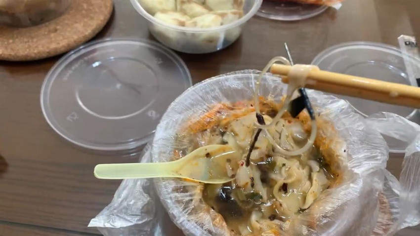 张先生拍下的视频显示,馄饨汤中的输液针管绕成一圈,约有四分之一手掌心大小,针头针管连接处是黑色的。他说,针管混在馄饨中,他自己没仔细看都没发现。