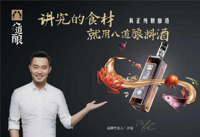 为提升八道酿的品牌形象,加速推进料酒市场的广谱认知,八道酿大举措签约了国内实力派影星——沙溢,并开启线上线下的高势能大推广,打造八道酿料酒品牌“溢时代”。