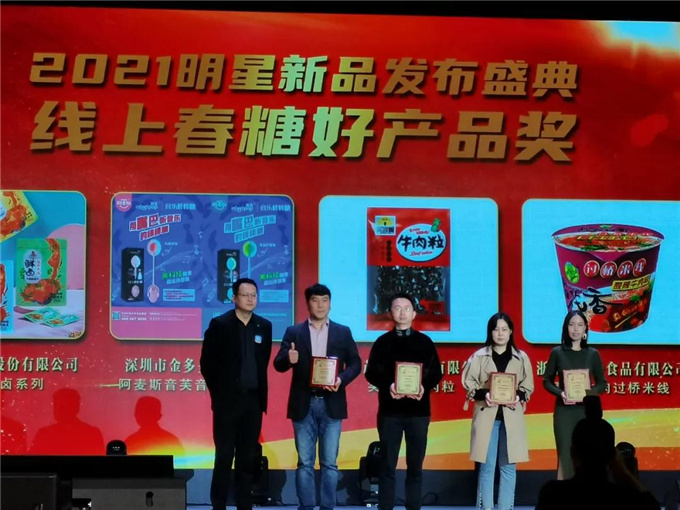 与此同时,2021线上春糖热产品同步发布。好巴食鲜卤系列、阿麦斯音芙音乐棒棒糖、笑喔喔牛肉粒、酸辣牛肉过桥米线荣获此项荣誉。