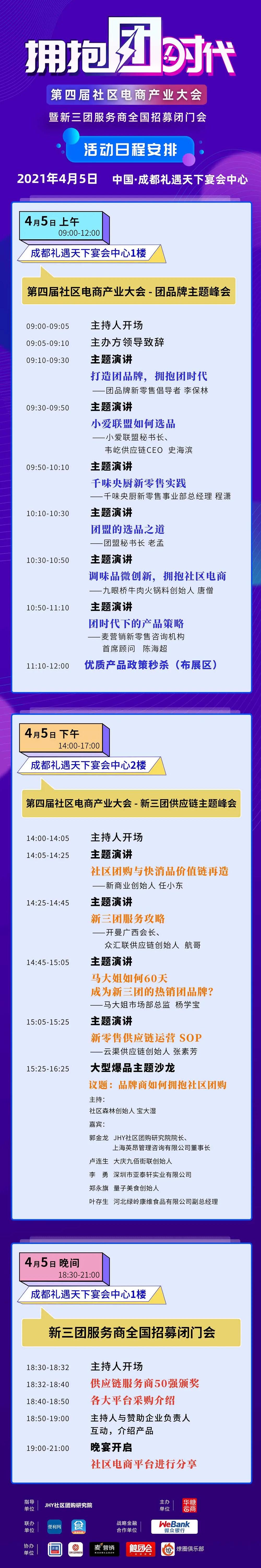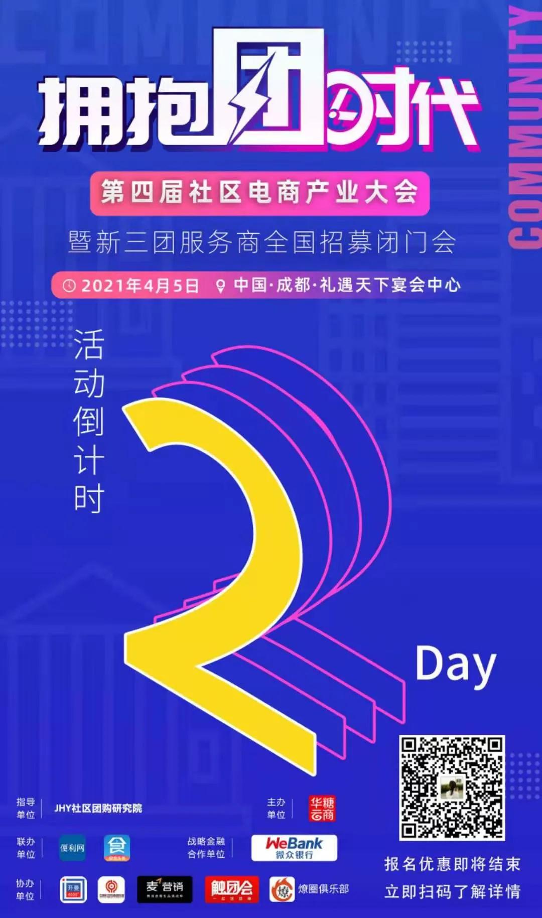 4月5日,第四届社区电商产业大会暨新三团服务商全国招募闭门会将在成都礼遇天下宴会中心盛大开幕。届时,将有50+业内外超强大脑、300+优质品牌、200+社区电商平台悉数到场!在现场,1000+社区电商精英现场分享大热、前沿的业界理念。