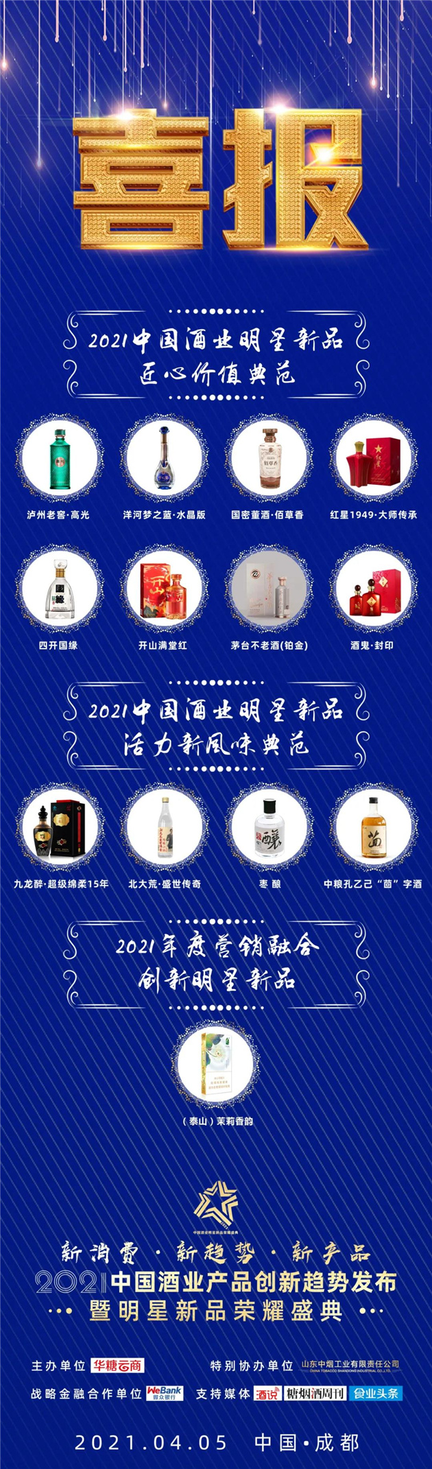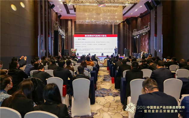 4月5日上午,以“新消费 新趋势 新产品”为主题的2021中国酒业产品创新趋势发布暨明星新品荣耀盛典在成都东大明宇豪雅饭店盛大召开。