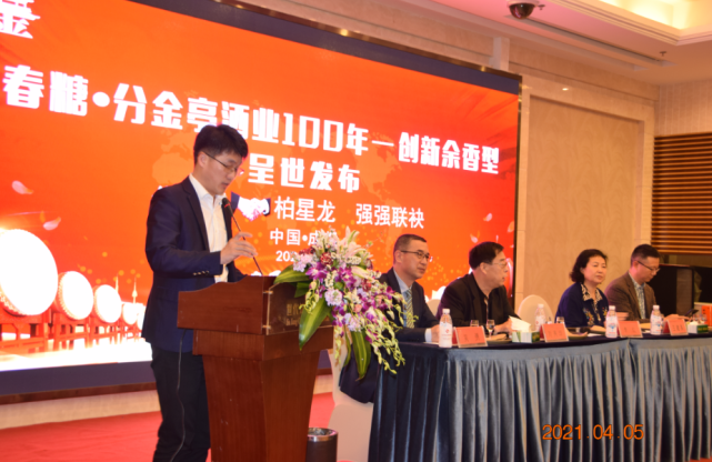 4月5日上午“春糖.分金亭酒业100年——创新余香型呈示发布,暨分金亭柏星龙强强联袂”在成都世代锦江国际酒店隆重举行。来自全国各地的协会领导、专家学者、媒体、生产、流通等各行各业人士见证了这一重要时刻。