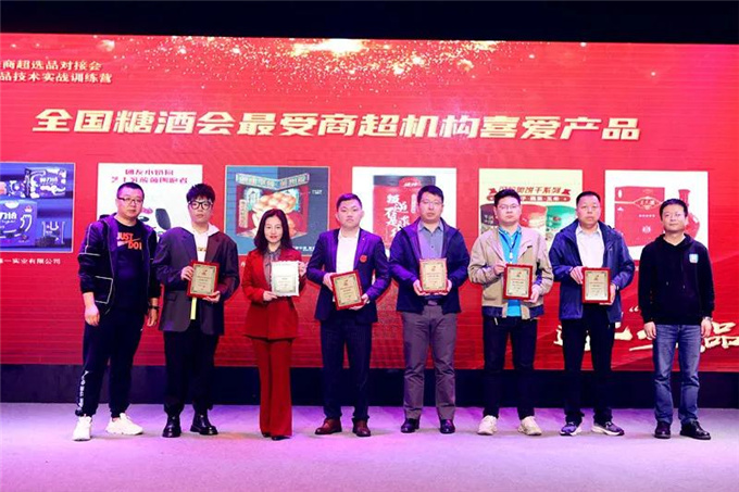 为帮助商超零售企业选到好产品,组委会特别举办“2021年全国糖酒会备受商超机构喜爱产品”评选活动,此次活动中,奥力给、王家渡食品、山西羊羔酒、河南团友小奶狗饮品、韩进(上海)食品、广东美和香食品,六款产品凭借其鲜明的卖点,优异的品质,从众多产品中脱颖而出,荣获这一殊荣。北京众商汇信息科技有限公司董事长袁旭敏、 华糖云商董事、食业头条CEO 梁剑为获奖企业颁奖并请合影留念。