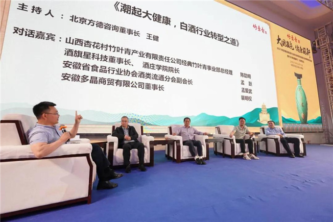 面对“健康”大势,转型成为经销商持续发展的新命题,在北京方德咨询董事长王健主持的《潮起大健康,白酒行业转型之道》对话环节中,陈劼明阐述了竹叶青酒“123”健康产业方向:“1”是以健康为核心,以产业力量推动“健康中国”落地生根。“2”是以科技创新与文化创新为两大支撑。“3”是打造数字化供应链平台、健康产业平台、资本合作平台等三大平台。并对竹叶青酒安徽市场落地深耕的“竹叶青模式”进行讲解。