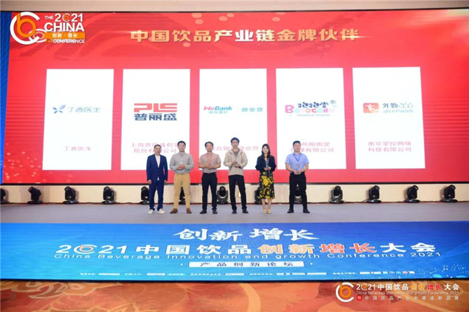 获得“2021中国饮品产业链金牌伙伴”奖项的有:丁香医生、上海普丽盛包装股份有限公司、微众银行、杭州抱抱堂传媒有限公司、南京掌控网络科技有限公司(外勤365)。