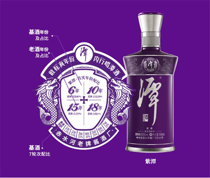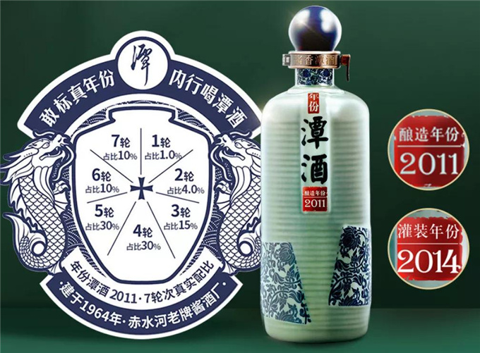 2019年,潭酒的“龙标”标识,将每一瓶酒所用基酒、老酒的年份、占比和7轮次酒配比都公开标注在瓶身上,完全做到公开透明,进一步让消费者对潭酒的真年份酱酒“可辨识、可感知、更信任”。
