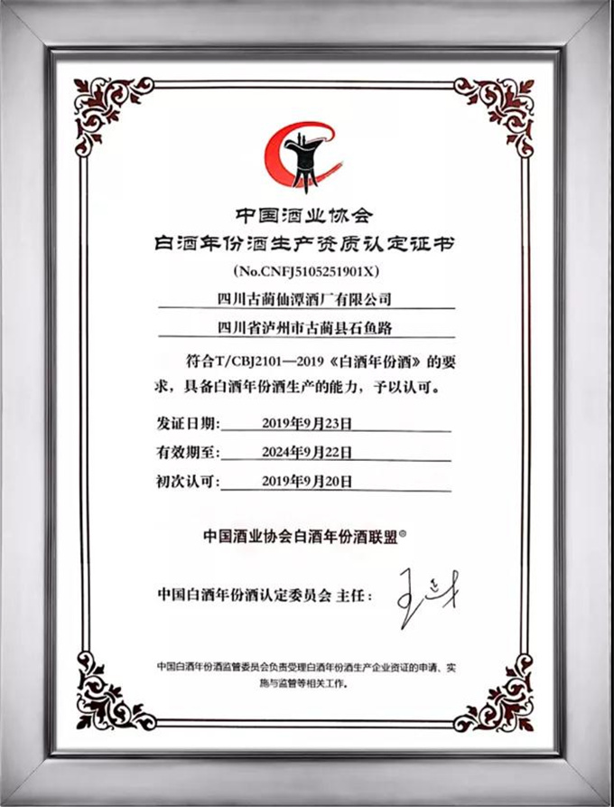 同年,中国酒业协会正式颁布《白酒年份酒团体标准》并成立了白酒年份酒联盟,对业内的年份酒生产企业和产品进行认证管理。潭酒不仅成为第一批认证企业,而且其标注的真实年份酒都通过了中国酒业协会的权威审定和官方认证。
