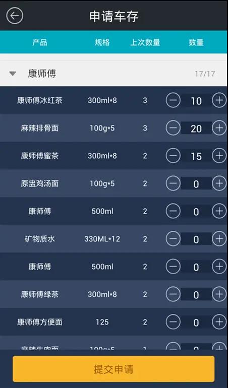 以前流程是库管跟着业务员先装车,一件一件货盘点,然后手工填写出库单,七八辆车一辆一辆来,这起码需要2个小时左右才能搞定。现在业务员自己在手机上申请车存,申请完内勤就能打印出申请出库单,拿出库单直接去库房提货,装车走人,效率快了很多。