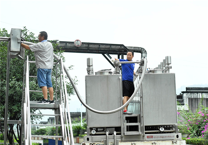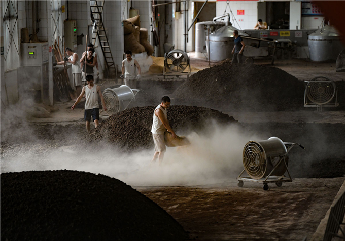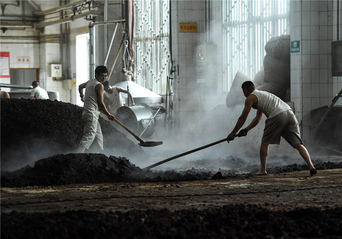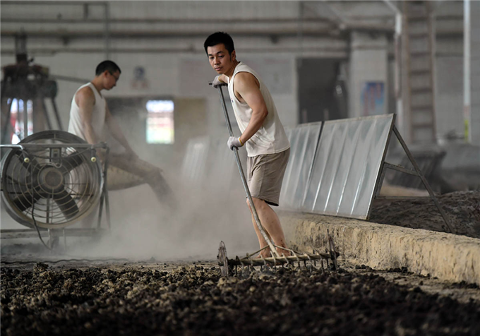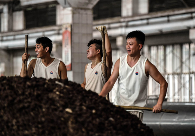 7月20日一大早,记者来到茅台制酒二十一车间,酒师张万军和10多名制酒工人已经在车间里,开始了循环往复的蒸煮取酒。张万军介绍,近年来企业加大了科技投入,虽然减轻了工人的劳动强度,但所有的酿造流程依然要靠工人长期积累的经验,进行手工操作。