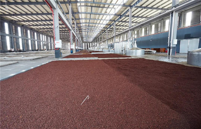 江记酒庄酿酒车间内,煮熟的高粱正在依次摊晾降温