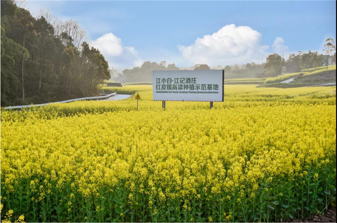 春天,江小白高粱示范基地开满了轮作的油菜花