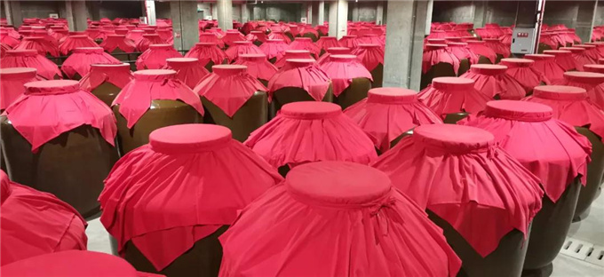 江记酒庄陶坛酒库内,储存着上等好酒