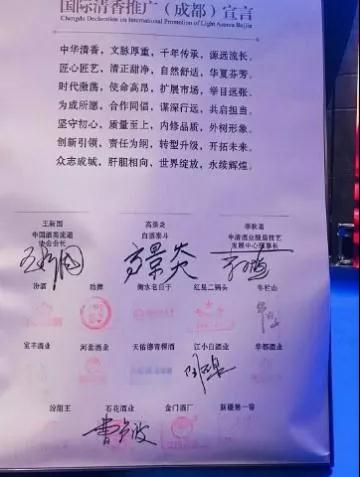各大酒企共同签署的国际清香推广(成都)宣言