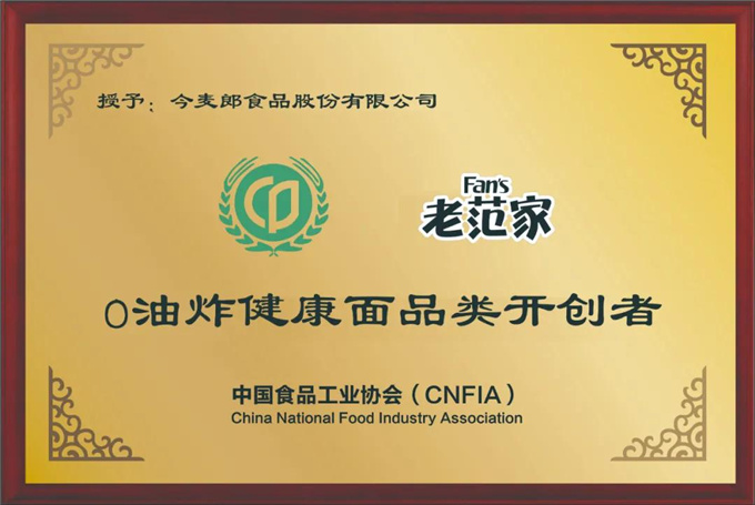 从1958年日本人发明第一代油炸方便面起,油炸工艺始终是方便面生产的核心技术。直到2018年,今麦郎关注消费升级需求,回应市场呼唤,从中国家庭蒸馒头、煮面条中汲取灵感,创造了蒸煮面的创新工艺,推出老范家0油炸健康面。中食协更是于2021年6月5日授予了老范家“0油炸健康面品类开创者”的荣誉称号,肯定其在方便面上的创新和贡献。