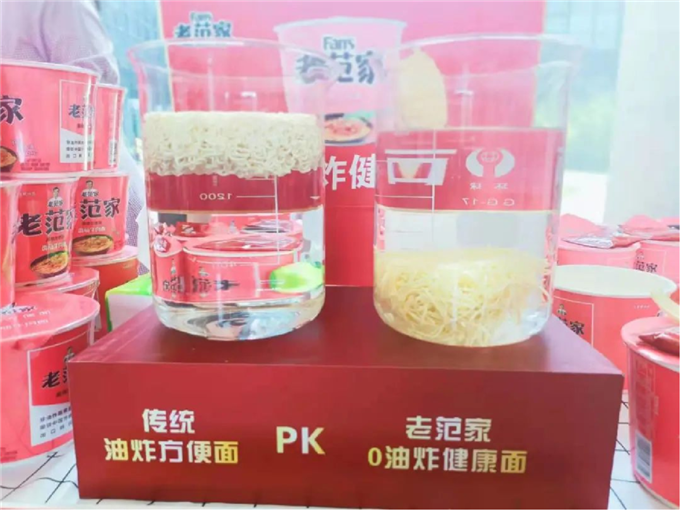 据了解,每位消费者食用一份老范家0油炸健康面比传统方便面少摄入约三分之一的热量,迎合了年轻人轻食轻负担、健康升级的饮食需求。