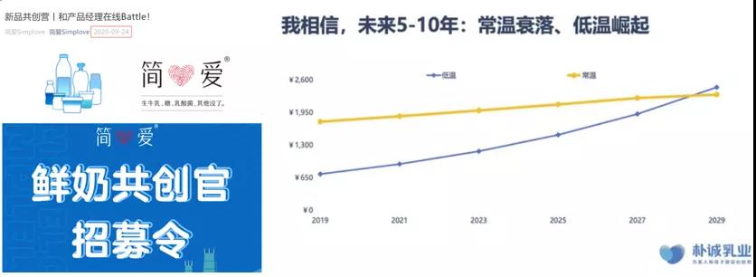 简爱酸奶创始人夏海通曾公开表示,2020年1-5月中国乳制品销量中,低温酸奶、乳酸菌饮料、常温酸奶一直在下滑,上升的就是纯奶,包括低温鲜奶、基础白奶以及高端奶。他还表达了对低温奶超越常温奶的信心。事实上,简爱从去年9月就已经付诸行动,开始着手鲜奶产品线的研发。此外,在公司A轮融资之后,还进一步透露了将在低温鲜奶之后继续拓展低温甜品的信息。