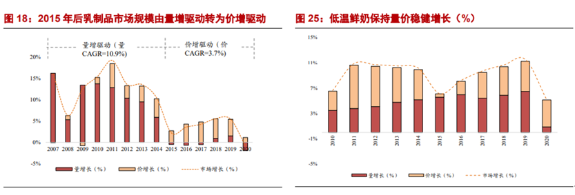 鲜奶或将成为品牌抢占低温奶增长红利的下一个风口。回首近十年的乳制品行业发展,低温奶一直是朝阳产业,其中低温酸奶更是领跑增长,但驱动因素在2015年之后从 “量增”转为“价增”,而低温鲜奶仍存在量价双驱动的增长空间。
