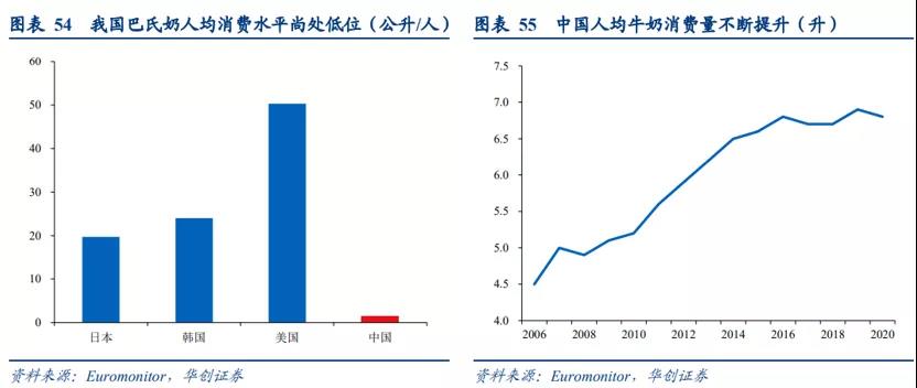我国巴氏奶人均消费量存在提升空间。图片来源:华创证券