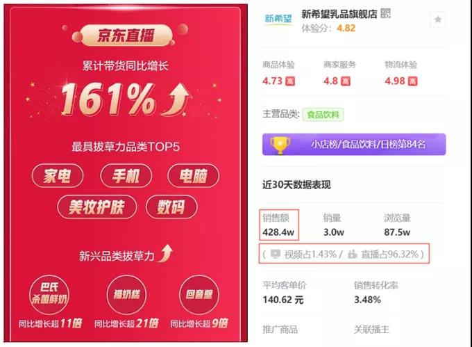 直播为鲜奶品牌和鲜奶品类打开新的增长空间。图片来源:京东、飞瓜数据