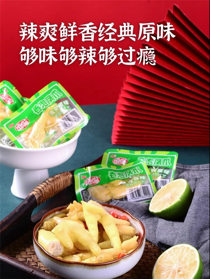 在品类爆发期,入局企业数量也与日俱增。截至目前,有友食品凭借泡椒凤爪实现了上市且年营收达10亿元;品品食品则以香泡凤爪产品在华北、华东、西北市场分得一杯羹,除此之外,无穷食品、福建贻庆食品、重庆辣媳妇食品等均推出特色凤爪产品,抢占品类赛道……另外,近年来,三只松鼠、来伊份、良品铺子、百草味、王小卤等新消费品牌也接连发力,成为凤爪市场上一股不容小觑的品牌力量。