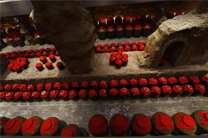 温度常年16-26℃,湿度在60-80之间,恒定的环境有效促进了原酒分子之间的缔合与品质的提升,因此这里成为美酒的较好贮藏地。每每从车间生产酿出来的原酒都会被一一运送到酒窖,再根据酒品的级别进行分级储存。一排排整齐列队的陶坛,不仅自身含有多种有益矿物质和微量元素,还具有“微孔透气性”,能使酒分子与空气中的氧气易于接触,促进酒体老熟。