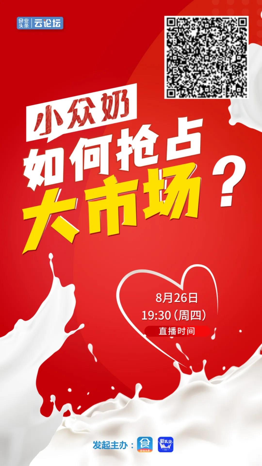 为了寻找这些问题的答案,为大家深入介绍小众奶各细分品类当前的发展情况、全面剖析未来的市场机遇,也为厂商朋友们开发新产品、开拓新渠道、开辟新市场提供思路与方向,新乳业联合食业头条发起《小众奶如何抢占大市场?》云论坛,将于今晚19:30分,在食业头条APP正式开播!