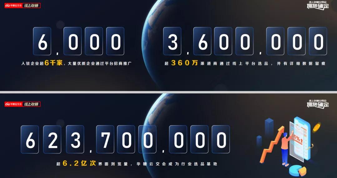 目前,大量优质企业通过华糖云交会招商推广,入驻企业已突破6千家;超过360万渠道商上线选品,并有详细数据留痕;界面浏览量达到6.2亿+次,成为行业首屈一指的选品基地。