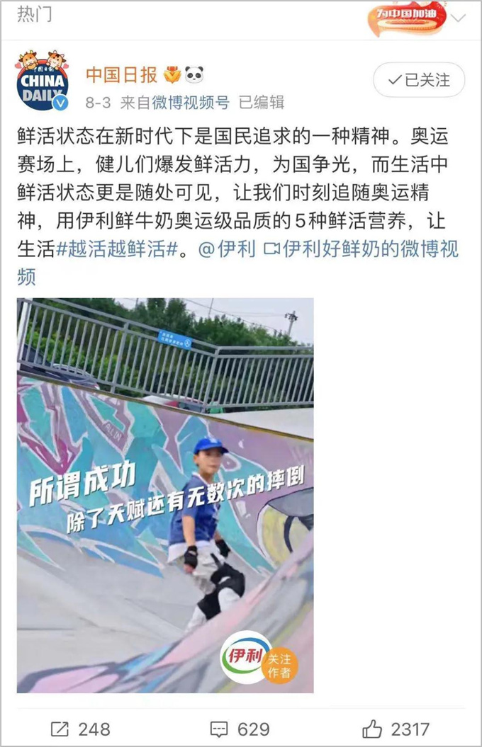 其实,奥运精神不止蓬勃在赛场上,在我们的生活里更是随处可见。为了发掘更多平凡生活中的鲜活精神,伊利鲜牛奶联合中国日报新媒体借势东京奥运会展开数字营销,共同打造“越活越鲜活”话题。
