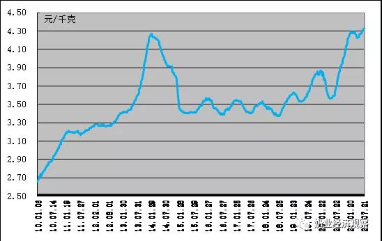Figure2-1 农业农村部全国生鲜乳周价监测(2017.01-2021.07)