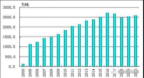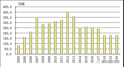 Figure4-4 全国干乳制品年产量(2000~2020)