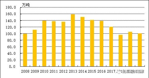 注:规模以上乳品企业(年销售额2000万元及以上)的产量统计,每年企业数量不一样