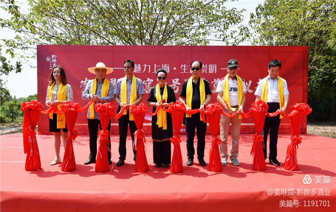 剪彩仪式上,崇明农旅商贸联盟会长宋伟生先生、崇明农旅商贸联盟董事长朱菊女士、崇明农旅商贸联盟主任茅德飞先生、上海黔琳窖股东乐建国先生、黔醉多酒业董事长姜琳娜女士、中国骏转理事会会长刘国材先生、黔醉多酒业高级顾问唐华灯先生共同为崇明黔琳窖壹号酒库奠基剪彩。