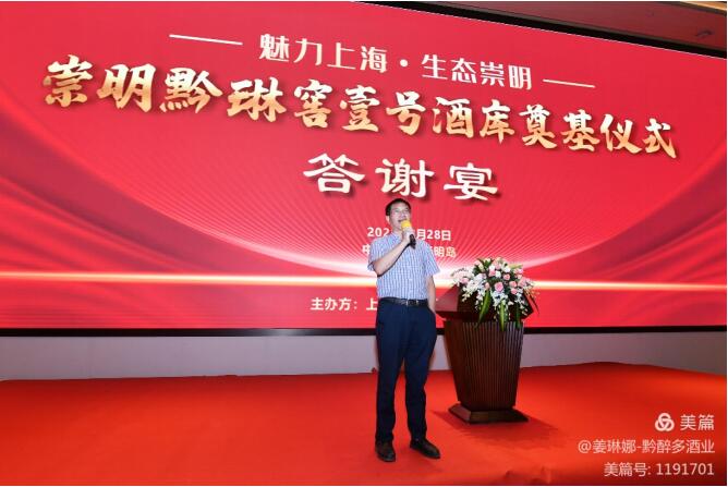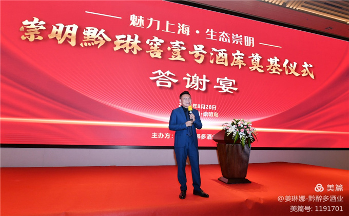 奠基仪式上,上海黔醉多酒业董事长姜琳娜发表了热情洋溢的致辞,她说,黔醉多酒业能有今天的良好发展成果,首先感恩中国骏转理事会创始人刘国材刘董的牵线搭桥和骏转平台对黔醉多酒业的赋能,感恩崇明农旅商贸战略联盟及农旅实业对崇明黔琳窖壹号酒库大力关注和积极推动,感恩广大黔琳窖股东、百位以上的坛主对黔醉多酒业的大力支持和积极推动。