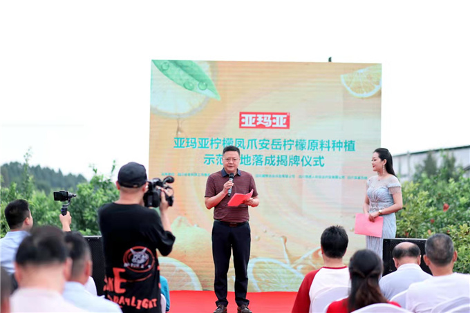 成都亚玛亚天然食品有限公司创立于2003年, 是一家食品企业,在休闲食品行业创业耕耘18载,产品行销全国。2015年,亚玛亚食品在全国率先立项研发柠檬凤爪产品,通过将无骨去骨的鸡爪鸭掌,与柠檬独特的“香鲜酸爽”风味进行融合创新,经过上千次的测试改进,亚玛亚柠檬凤爪于2019年正式推出,直至目前销售势头十分旺盛,消费评价众口皆碑,市场需求蒸蒸日上,有非常好的发展前景。此次率先在四川安岳建立国内首个供应亚玛亚柠檬凤爪的高品质柠檬示范种植加工基地,必将为企业的进一步发展打下坚实基础,也将为原料产地的良性发展注入强劲动力。