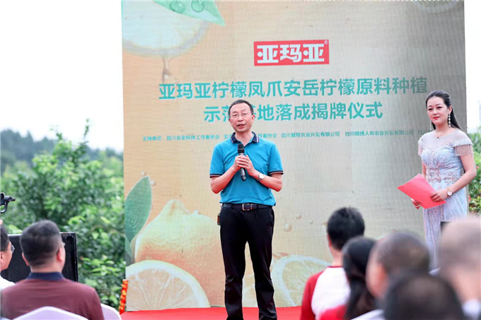 安岳柠檬产业中心主任田再泽、安岳县通贤镇党委副书记、镇长彭泽明也分别在仪式上致辞,对基地落成表示祝贺。