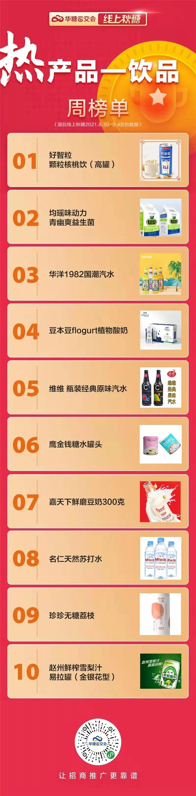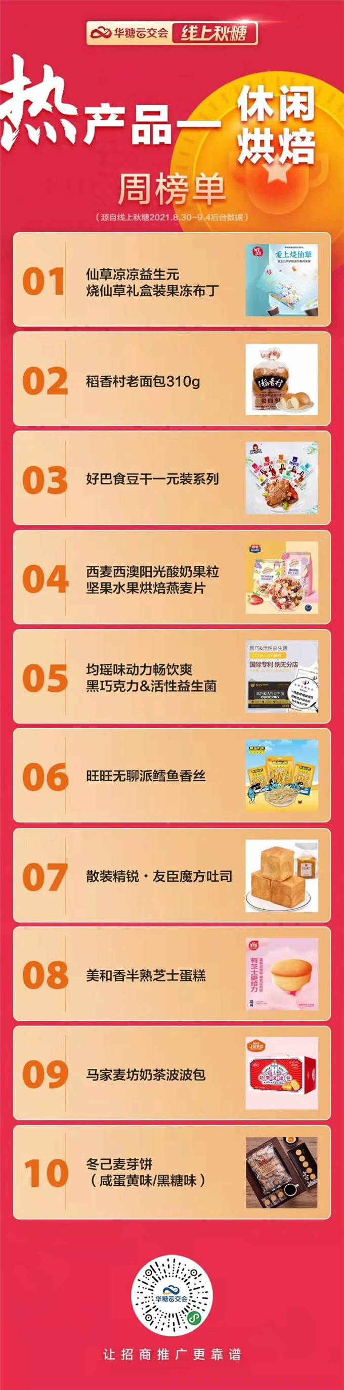 榜单发布:2021线上秋糖热产品榜单评选将依据2021华糖云交会·线上秋糖交易会平台数据,将产品浏览、点赞、分享等数据进行归类与排序,以筛选出线上秋糖热产品!