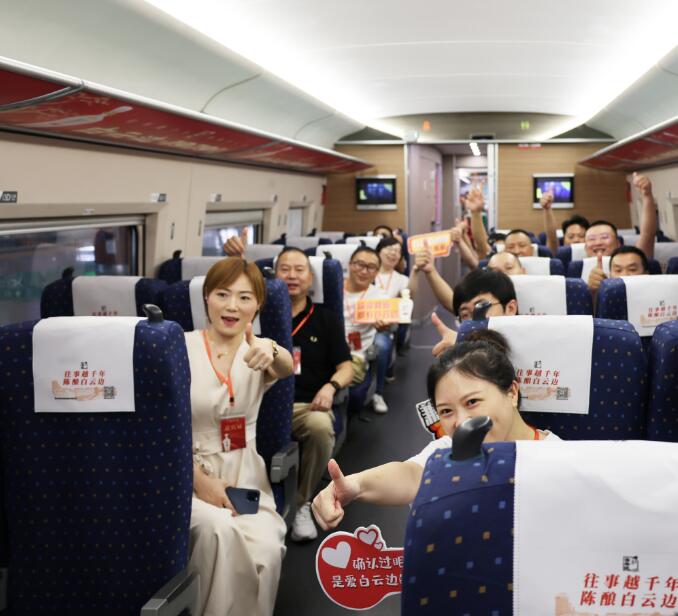 “往事越千年,陈酿白云边”。9月28日9点30分,白云边冠名高铁专列从武汉高铁站出发,跨越长江驶向深圳北。