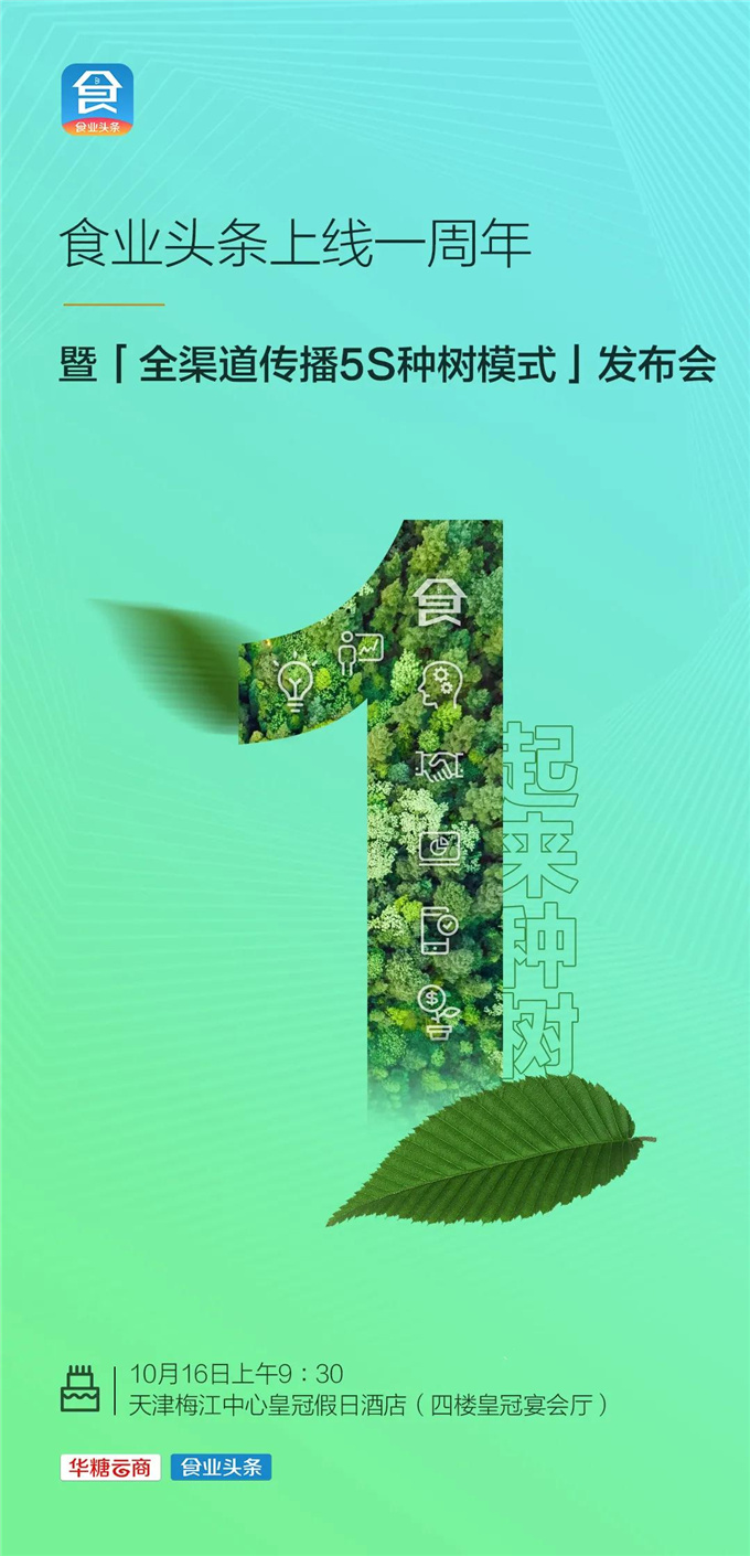 2021年10月16日,【一起来种树——食业头条上线一周年暨“全渠道传播5S种树模式”发布会】将在天津·梅江中心皇冠假日酒店隆重举办,会间将围绕以下内容进行解读和研讨: