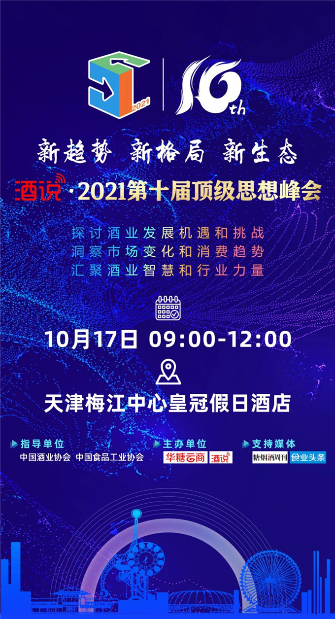 “共同富裕”下将具体呈现出怎样的宏观环境变化与酒业发展生态?白酒的价值增长路径又是什么?酒说第十届酒业顶级思想峰会将以“新趋势 新格局 新生态”为核心主题,探讨酒业发展机遇和挑战,洞察市场新变化和消费新趋势,汇聚更大的酒业智慧和行业力量,为酒业提供新的思想成果和创新启发.......