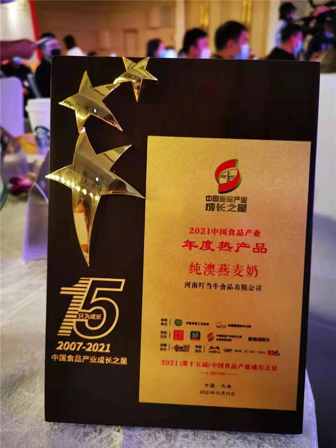 △纯澳燕麦奶获得了成长之星“2021中国食品产业年度热产品”称号