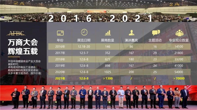 首先,线下会议会展大型综合体。自2016年12月份首届万商大会举办以来,开出了产业新高度,开出了行业兴奋点,历经起步期、壮大期和盘整期,成功打造中国糖酒食品行业大型会展的新一极。2021年,万商大会面积超6.5万㎡,参展企业破1000家,专业经销商将达70000人(约25万人次),实现了传统会展到“会议会展综合体”的升级蝶变。
