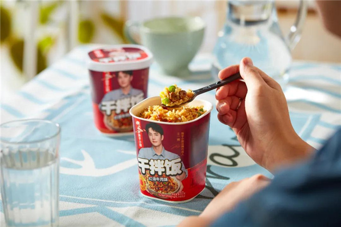 据悉,“干拌饭”一杯产品三种料,包含南瓜、豆角、玉米三种脱水蔬菜;甄选东北大米,采用专业熟化技术,保留米香;浓郁酱包,料足、味足,拌饭更爽。目前,有红烧牛肉味、瑶柱香菇味、白辣椒牛肉味等多种口味。依托出众的产品品质,“开水泡一泡,吃前拌一拌”“拌饭就拌干拌饭”等魔性口号,在年轻群体中迅速传播开来。