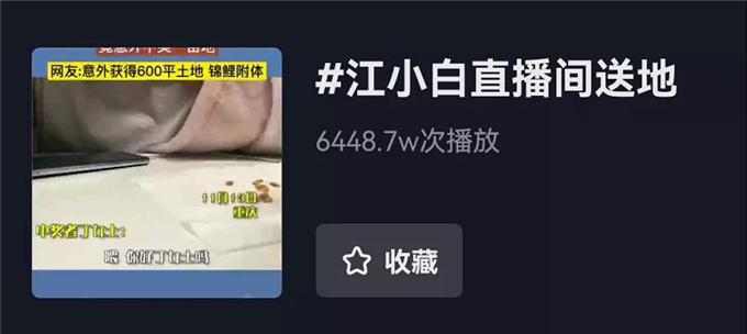 11月14日,#江小白直播间送地#事件火爆全网,引发网友热烈讨论,目前在某平台的播放量已超过6000万。恰逢当晚江小白创始人陶石泉在街头直播,直播间一时全是网友关于“江小白居然有地”的刷屏。