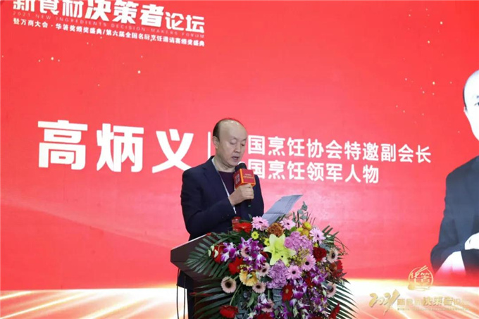 中国烹饪协会特邀副会长、中国烹饪领军人物高炳义为论坛致辞。民以食为天。当前消费者对健康、便捷、美味食材的需求越来越突出,食材产业与餐饮产业结合迎来巨大机会,正在迎来创新发展的新“食”代,预制菜、复合调味品迎来快速发展的机遇!提振产业信心,促进厂商交流,助推行业发展,他预祝此次论坛圆满成功!
