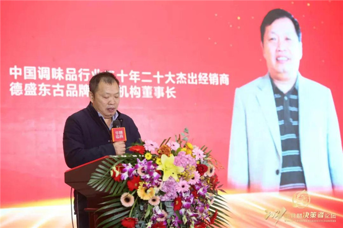 中国调味品行业二十年二十大杰出经销商、德盛东古品牌管理机构董事长林紫辉致辞。他表示,华糖万商大会不但是厂商对接的桥梁,更是前瞻理论与思想碰撞的舞台。历届万商大会期间华糖云商提出的 “新营销”“同城生活服务商”“全渠道”等观点,指导了很多经销商的转型升级。 德盛东古品牌管机构(德盛干调)是李锦记、雀巢、东古、劲霸、百利、大喜大、味之素等多个优质品牌的代理商,也始终在不断升级转型,与时俱进,紧密围绕合作企业与消费需求,进行改革和创新。