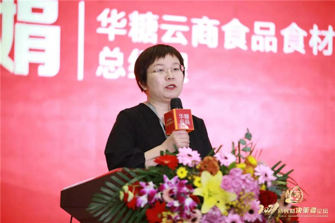华糖云商食品食材事业部总经理史淑娟致辞。她认为,从长远来看,作为日常生活刚需的食材调味产业仍拥有广阔的发展空间。一方面,餐饮复苏,新消费人群崛起,日益增长的人均可支配收入,更频繁的人口流动,激发了更丰富的美食味觉需求;另一方面,疫情的常态化影响,使厨房仍然是一个不可或缺的家庭场景,烹饪的需求还会长期存在。而这些是复合调味料、预制菜的巨大机会。 食材调味厂商要在时代变化的浪潮中,抓住消费端呈现出来的未被满足且需求旺盛的机会,坚持走品牌化、品质化之路,建立独特的品牌壁垒,打造出更多的“国民型品牌”,从而实现品牌的长期盈利。