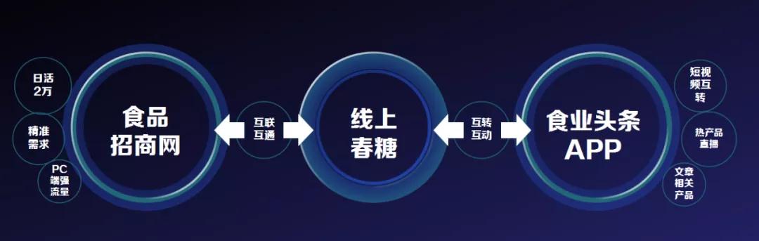 食品招商网依托自身在糖酒食品行业16年的资源沉淀,日活2万+,平台招商选品需求旺盛。与食品招商网的资源互通,将线上春糖几千家企业,几十万产品搬上招商网平台,进行店铺及产品的展示,给厂商合作打开更多的窗口。 作为糖酒食品行业人自己的头条,食业头条自上线以来,下载量已突破300万次,汇聚100万+行业用户群体,站内日活平均保持在2万以上。短视频互转、热产品直播、行业文章的互推,高精准粉丝流量的注入,为线上春糖领跑前行提供强大的动力。