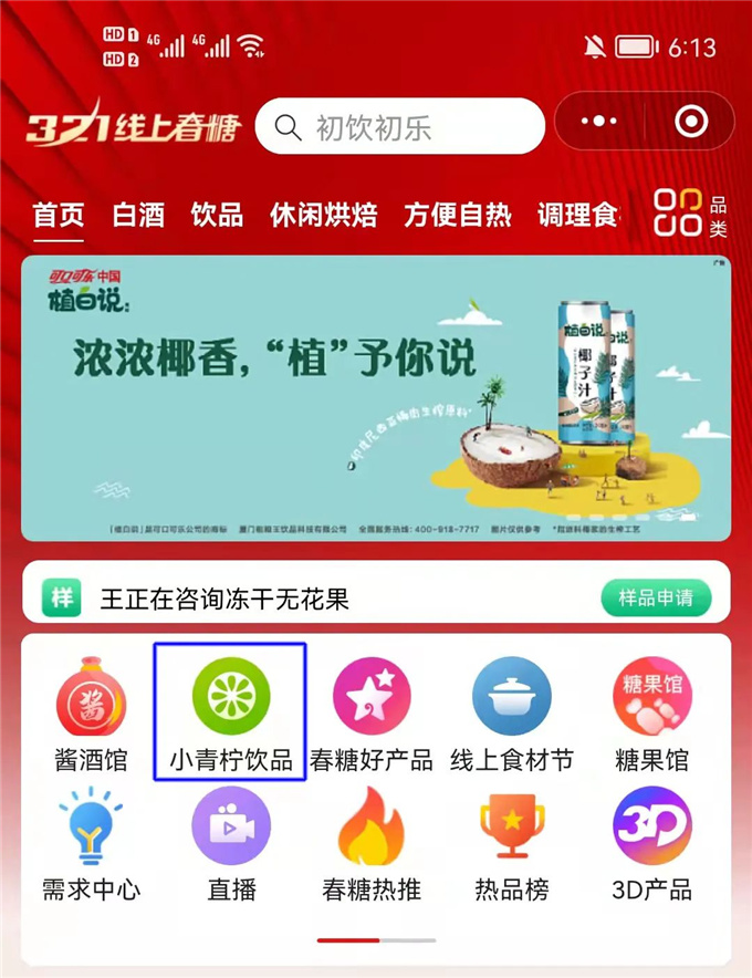 随着酱酒馆,线上食材节的顺利开馆,近日,小青柠饮品馆也上线啦!疫情当下,随着特色展馆的相继开设,321线上春糖给予了糖酒食品行业更多的确定性。
