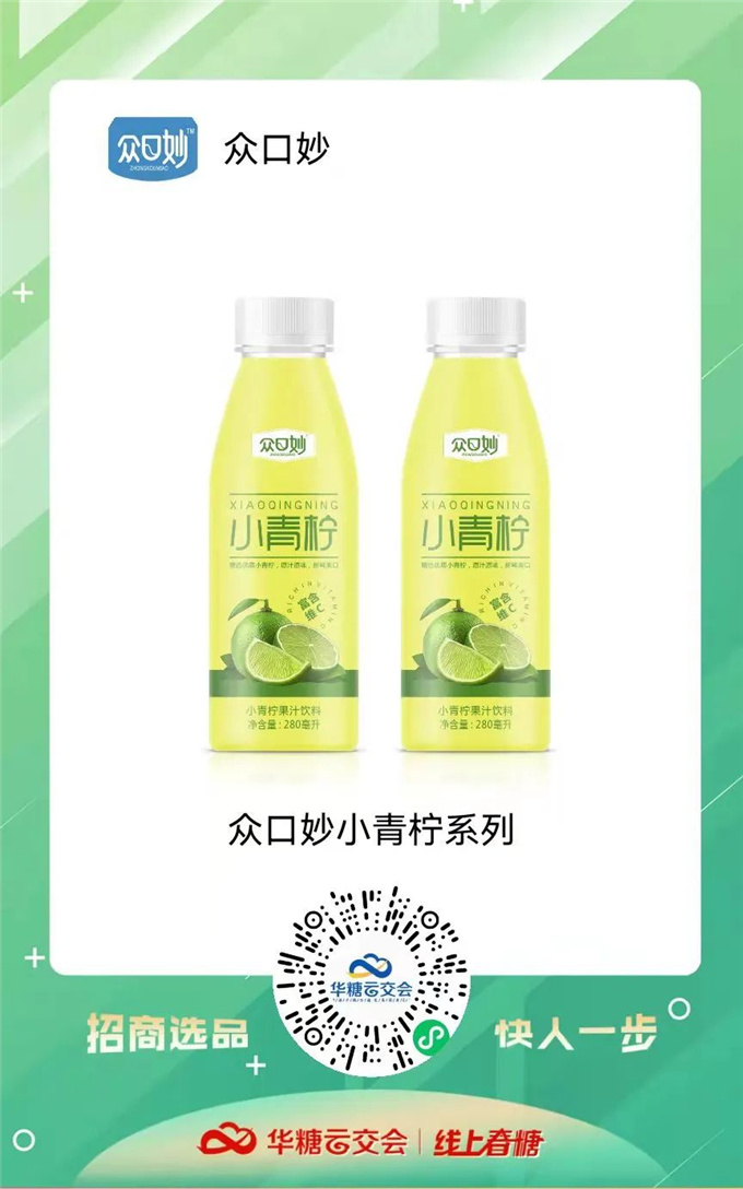 近两年,在消费者追求健康生活的理念下,“好喝”、“健康”成为了饮料行业的高频词汇,小青柠汁作为“好喝”、“健康”的网红新品类脱颖而出,迅速崛起。随着甄沃、众口妙、乐体控、青蓝饮品、带劲等众多青柠产品的加入,这一品类即将在2022年夏季迎来全面爆发!今天,321线上春糖为您带来十款小青柠汁新品,助推经销商抢占行业热点,跑赢市场!